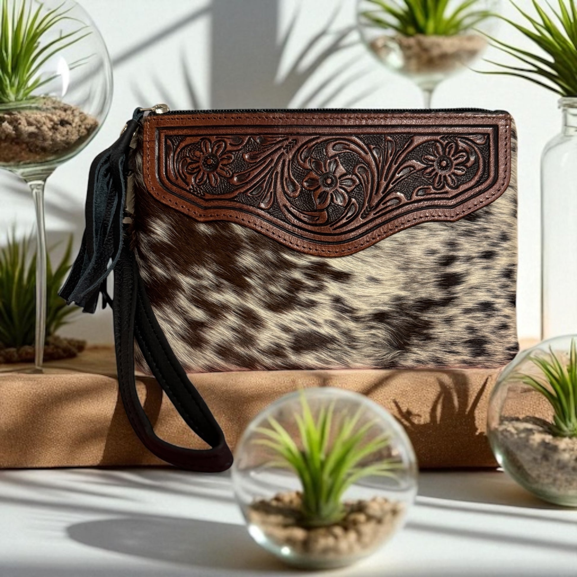 Elevate your style with our Zara tooled leather Cowhide Clutch! Crafted with beautiful cowhide,tooled leather, this clutch is the perfect accessory for any summer outfit. With its spacious design and durable materials, it's ideal for carrying all your essentials while adding a touch of sophistication. Upgrade your wardrobe today and turn heads wherever you go!